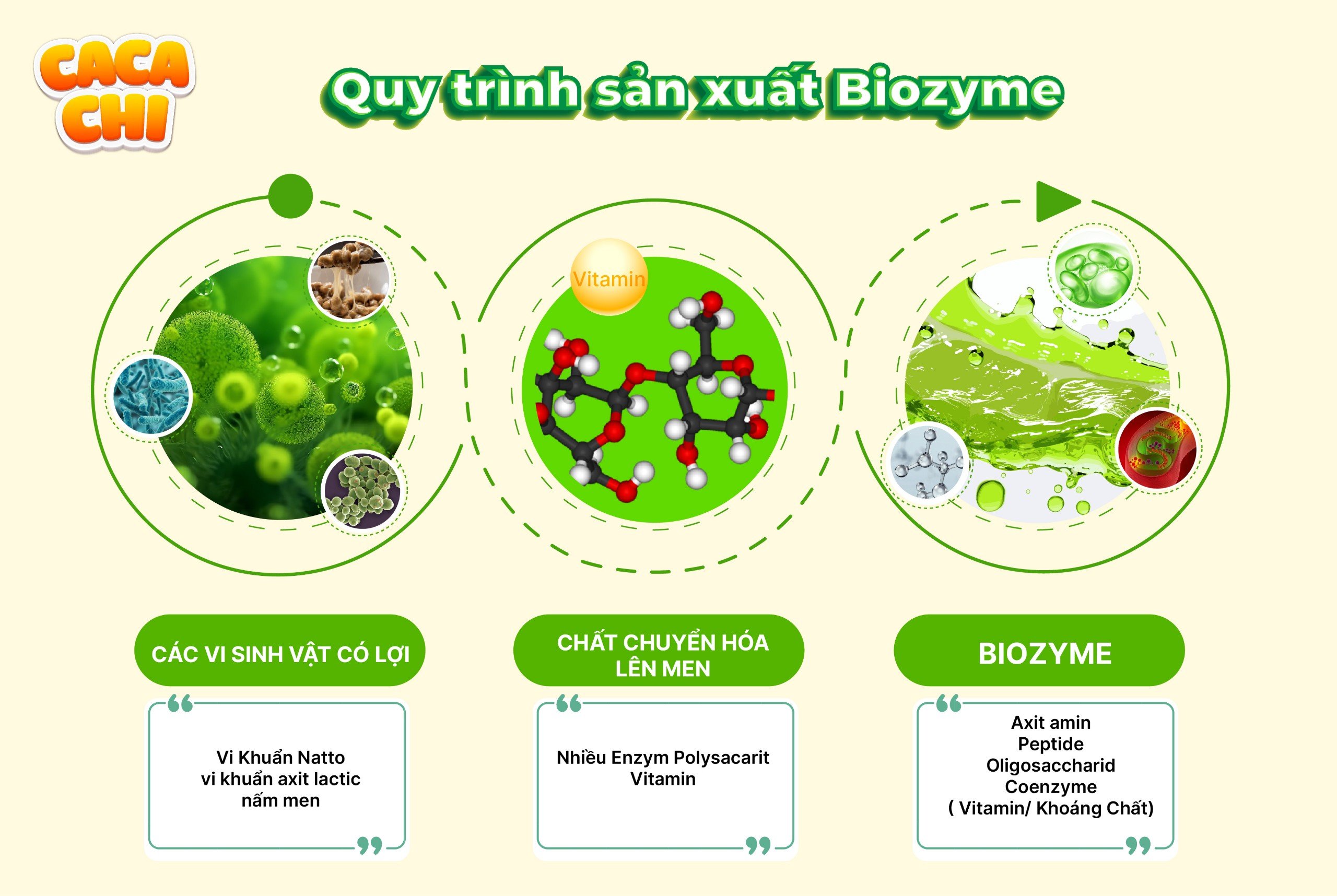 - Biozyme (chiết xuất rau củ quả cô đặc lên men bằng chủng vi khuẩn Bacillus, nhập khẩu Nhật Bản)